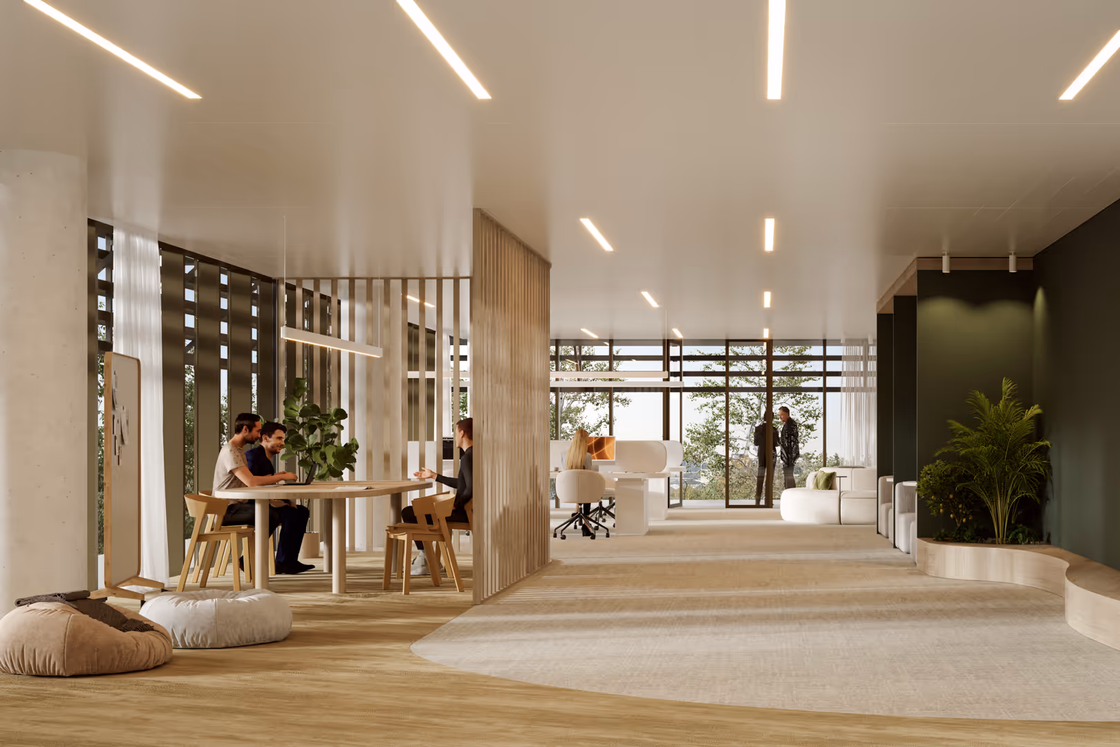 De eerste drie verdiepingen van de kantoorgebouwen zijn bestemd voor community opbouw. Hierdoor brengen we ondernemers samen in settings als gemeenschappelijke vergaderzalen, restaurant- en fitnessfaciliteiten. Ons doel? Nieuwe partnerships aanmoedigen en elkaar inspireren.